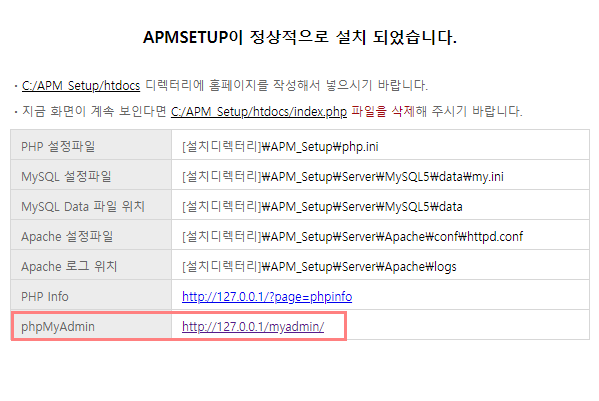 웹 서버 구축 | phpmyadmin / root / DB id,password